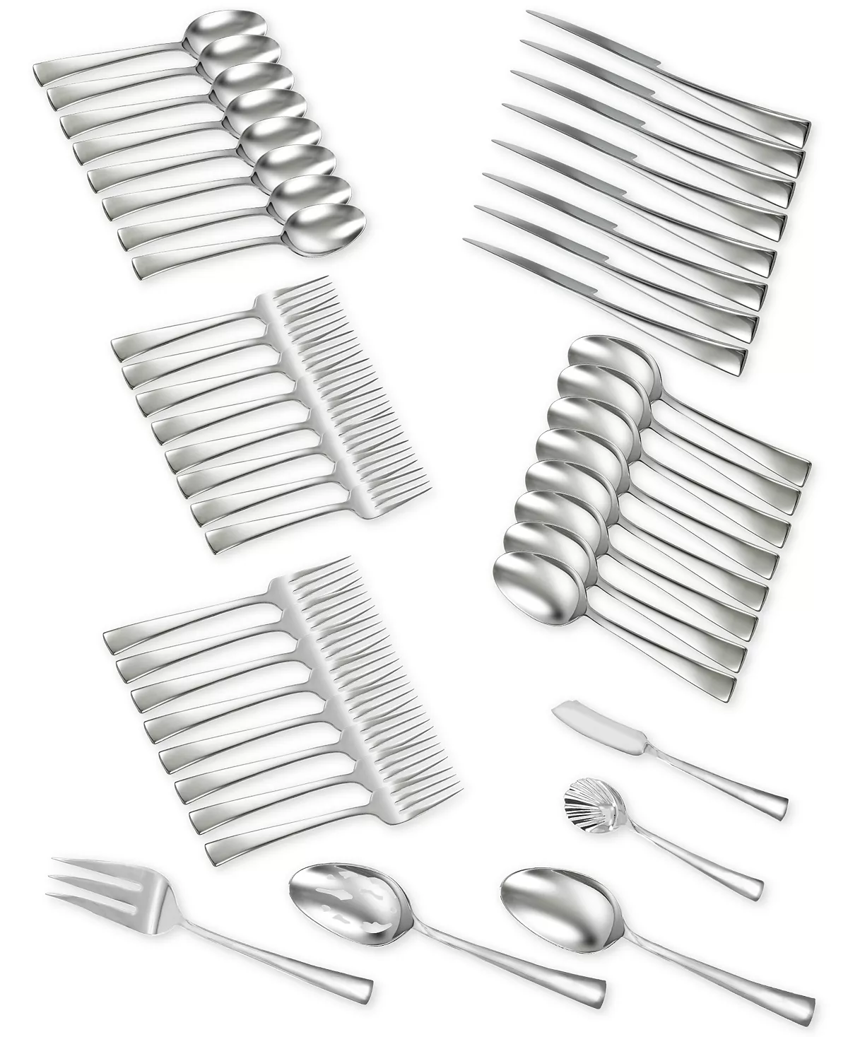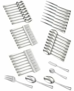 - Includes 8 of each of the following: salad forks, dinner forks, dinner knives, soup spoons and teaspoons; plus a 5-piece hostess set