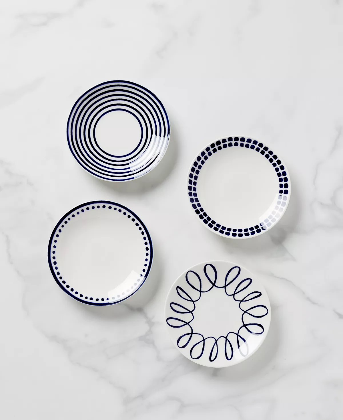 Invite style into your home with these spectacular tidbit plates. Nibble your way through the day on these bite-sized platters. With carefree patterns that will hypnotize you into having one more taste.