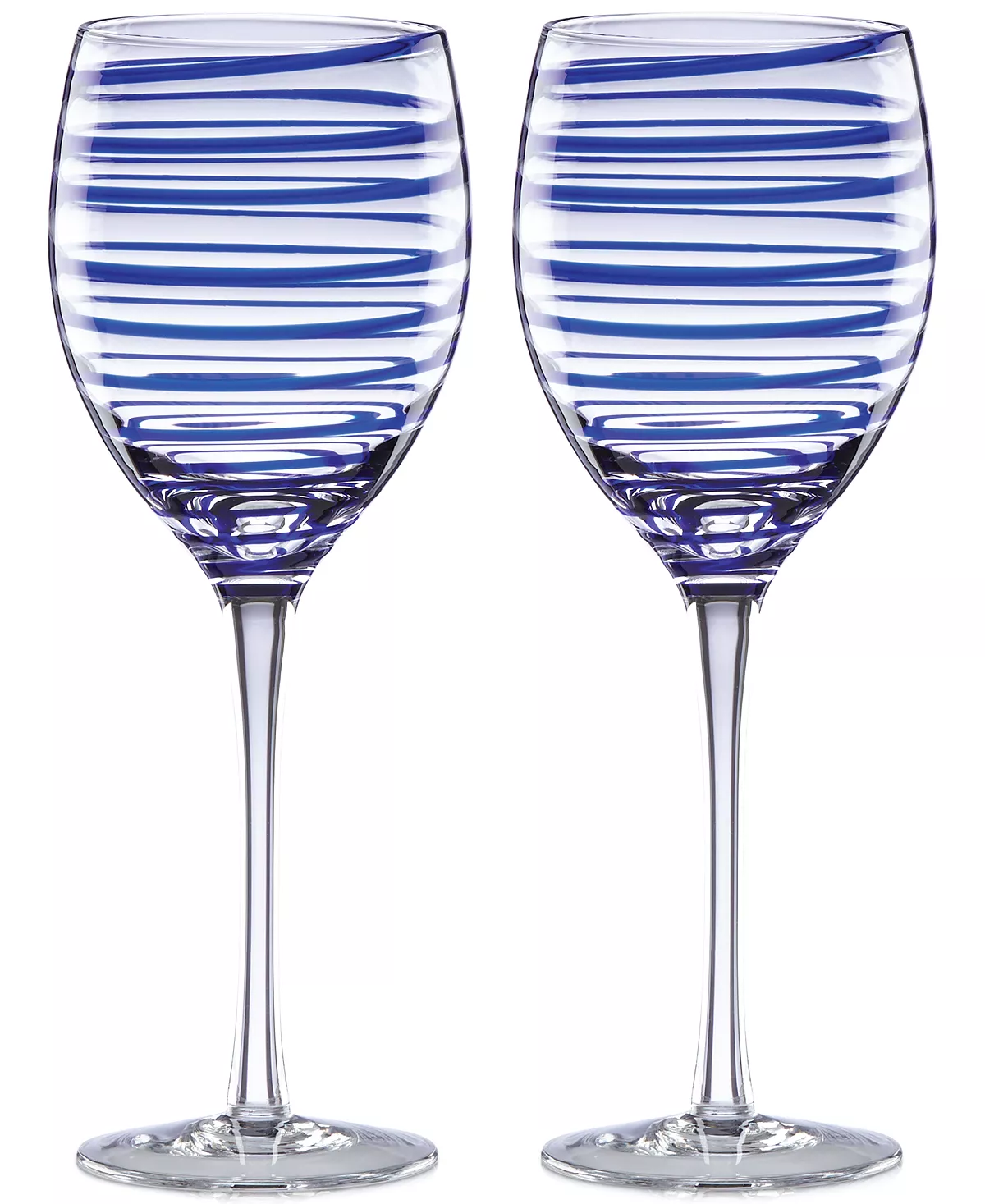 Cobalt blue swirls through kate spade new york’s Charlotte Street Collection wine glasses add a versatile pop of color to your barware collection.