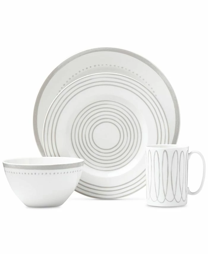 An array of artful designs gives a hand-painted look to each of the pieces in the kate spade new york Charlotte Street West Grey Collection place setting.