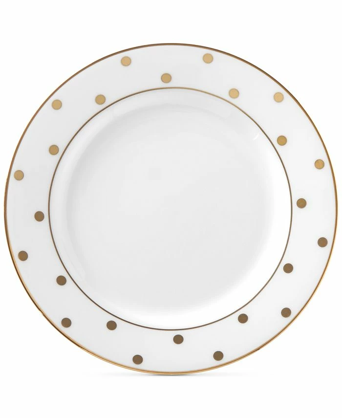 Elegant in bone china, kate spade new york’s Larabee Road Gold Collection adds a polka-dot print in luxurious gold-tone to this butter plate for a fun accent to fine dining.