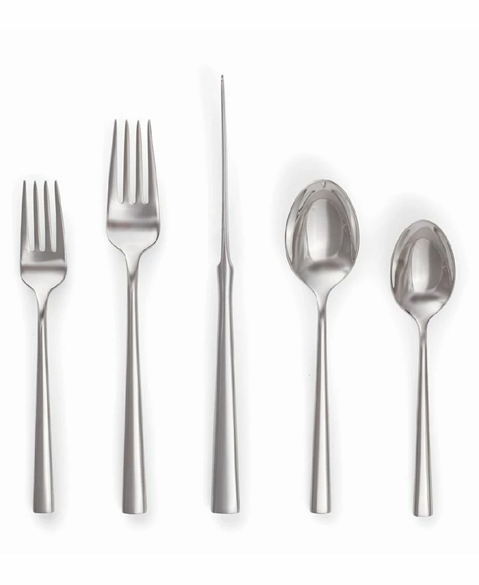 The Malmo place settings collection from kate spade redefines modern tabletop style with precision lines and uniquely sloping, tube-like handles. The unique utensil design lets the knife rest on its edge and makes it easier to handle.