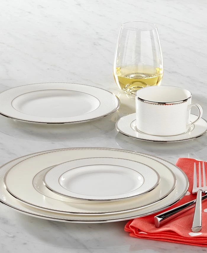 A sweet setup for your formal table, the Sugar Pointe Dinnerware Collection features luxe bone china embellished with a platinum scalloped design. From kate spade new york.