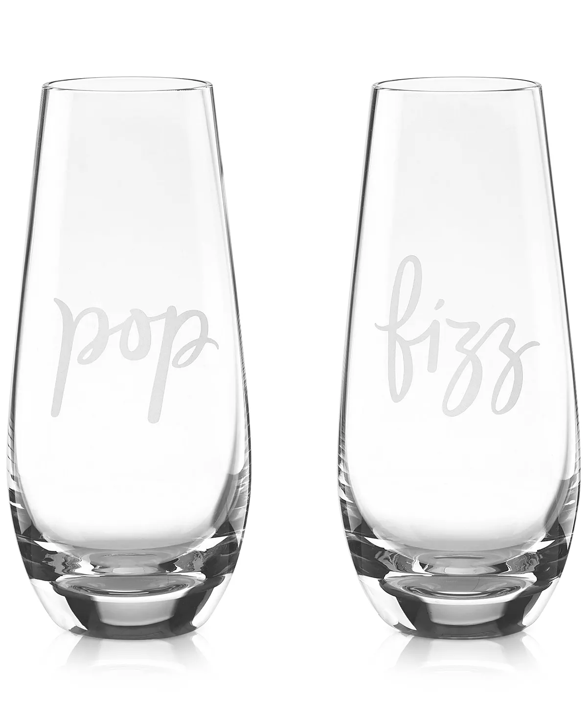 Pop the top of your favorite fizzy beverage and enjoy the etched words of the elegant Pop & Fizz stemless champagne glasses from kate spade new york.