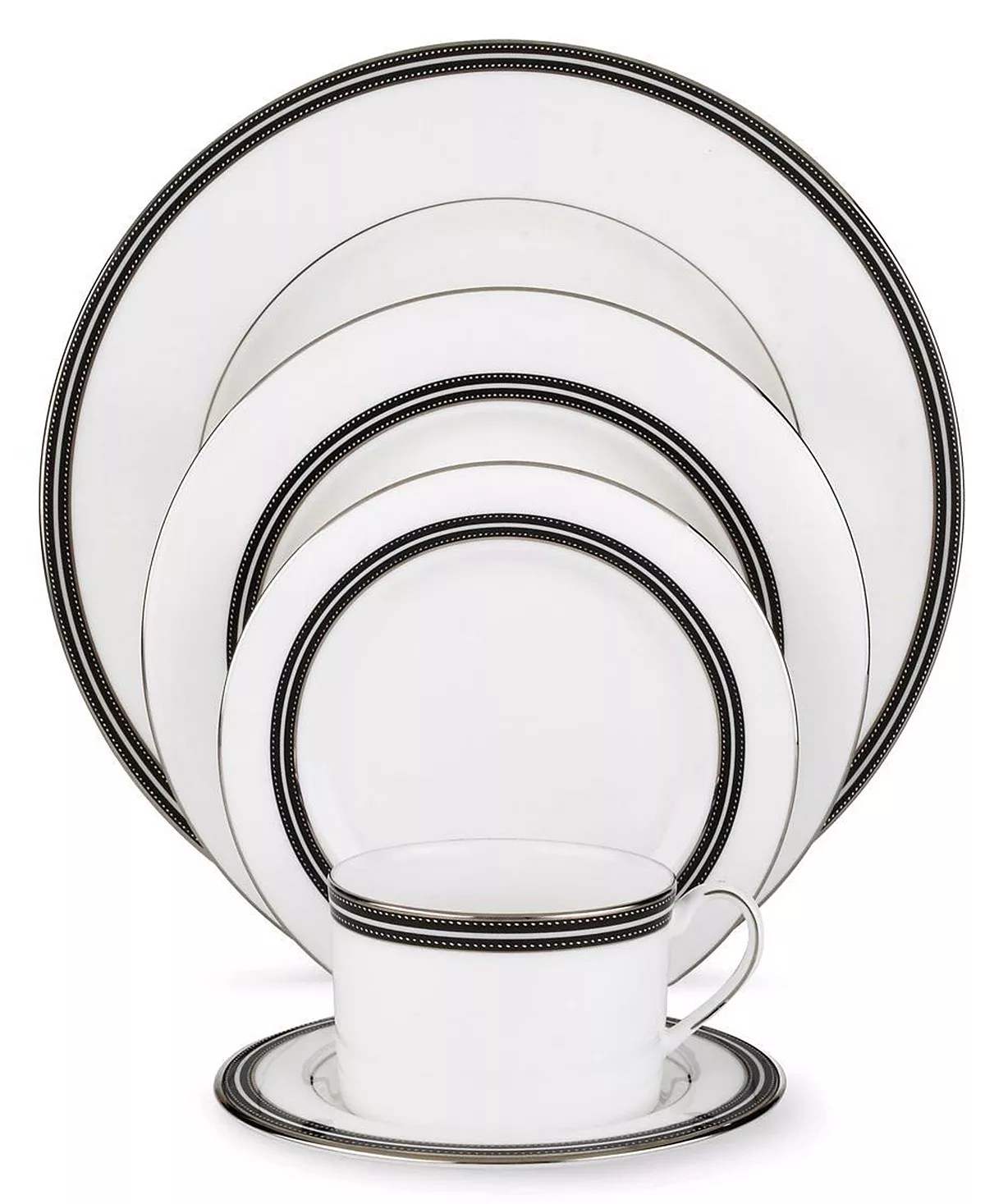 In the hands of kate spade, black and white is anything but basic. Dancing ebony stitched stripes provide a stunning contrast to the pristine china of the Union Street collection.