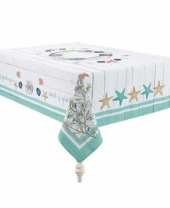 Set sail on a coastal escape this holiday season with Laural Home’s “Coastal Christmas” tablecloths. This lively design features nautical icons and coastal creatures on a boardwalk-like background. Bring the peaceful spirit of the sea to your home in time for the holidays.
