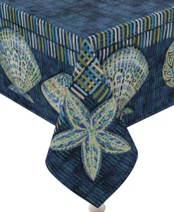 The coastal tablecloth “Embellished Shells” is the perfect addition to your table. Mosaic-style shells and starfish create a classy nautical feel, while the textured blue background creates depth to the design. This fresh twist on coastal colors is the perfect touch to any seaside escape.