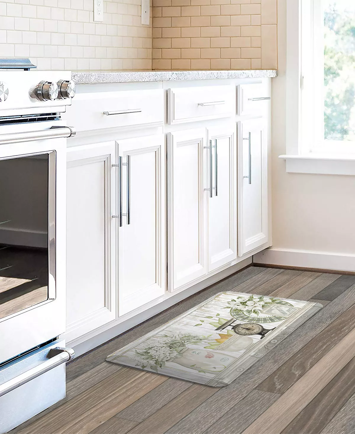 The simplistic and playful “French Pears” farmhouse kitchen mat comes to life using patterns and textures to create a unique illusory effect.
