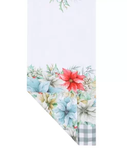 “Glad Tidings” is a chic and modern holiday reversible runner design. Dusty blue, mushroom, ruby red, and golden mustard watercolor poinsettias, placed on holly and a green-gray gingham pattern, create the epitome of a new take on a classic Christmas.