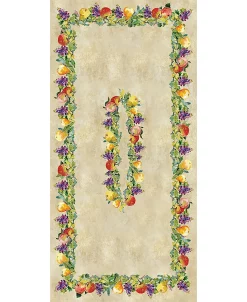 This fruit harvest themed tablecloth, “Palermo” creates an essence of Italy in any dining space. The design features a vine of vibrant watercolor apples, pears, grapes against a tan, background. Add this beautiful, soft to the touch tablecloth to your dining area for a rustic cultural look.