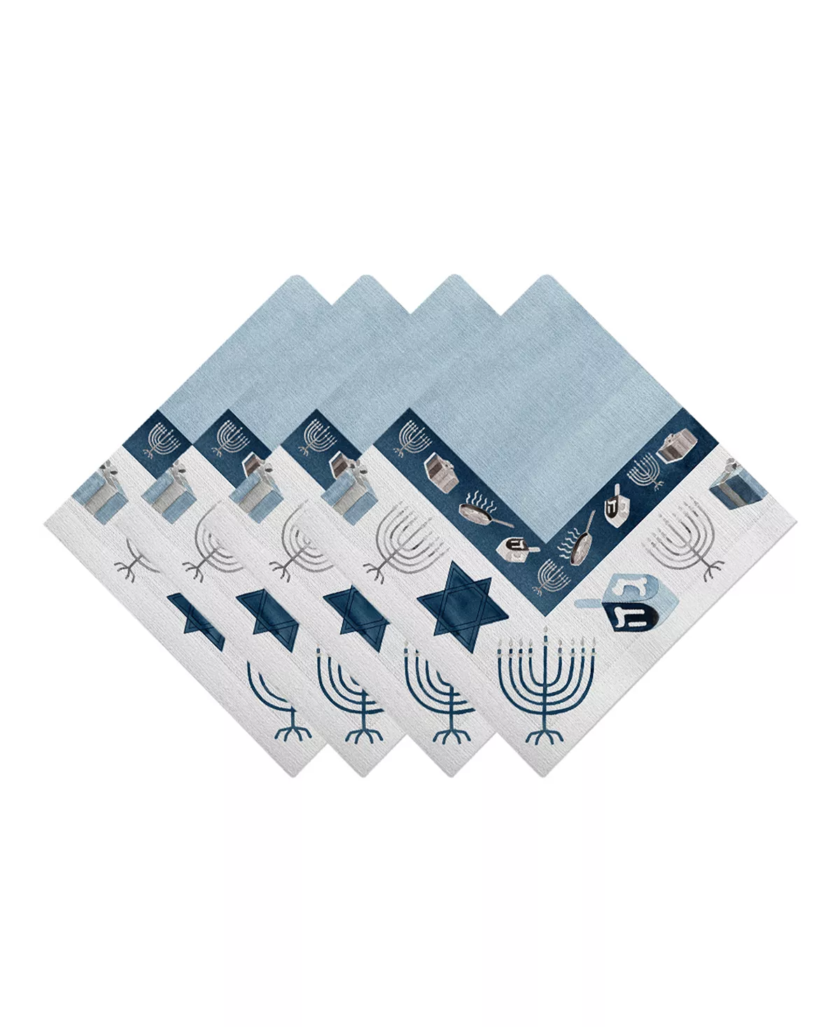 This napkin set, “Happy Hanukkah”, features various Hanukkah motifs such as dreidels, menorahs, and Star of David on a white and light blue background. Whether you’re planning to invite your extended family or just a small circle, this lighthearted design will rise to the occasion.