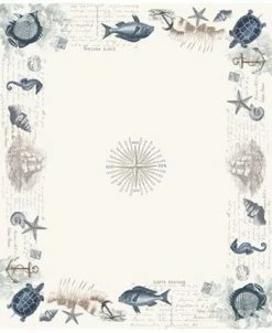 Enjoy the serenity of the seaside at your dining table with the Laural Home “Seaside Postcard” tablecloth. This tablecloth features a layered design of sea creatures, shells, and other coastal icons set on a postcard background which will make a unique, elegant addition to your dining decor.