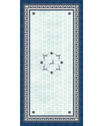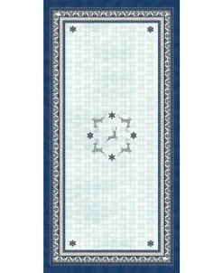 Fill your dining area with seasonal spirit courtesy of Laural Home’s “Simply Winter” tablecloth. This fun, patterned design features dancing reindeer classic snowflake icons in cool winter blue hues which will make this design a unique, elegant addition to your dining decor this holiday season.