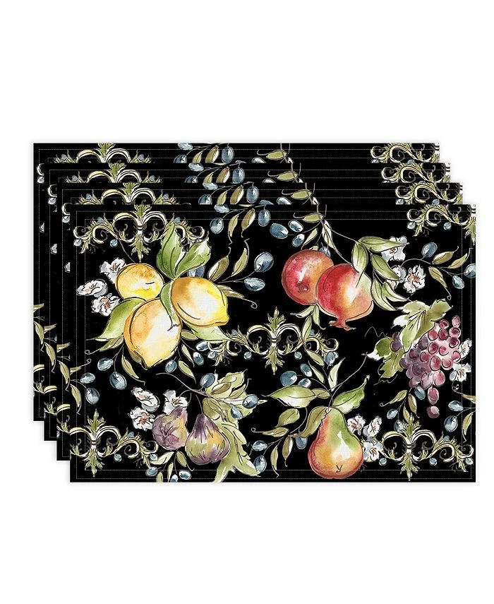 This food-inspired reversible placemat “Tuscan Fruit Sketch” features watercolor fruit, pomegranates, lemons, figs, pears, and grapes. The contrasting black background plays off the rich colors of the fruit. This placemat will add a special touch of elegance to your everyday table.