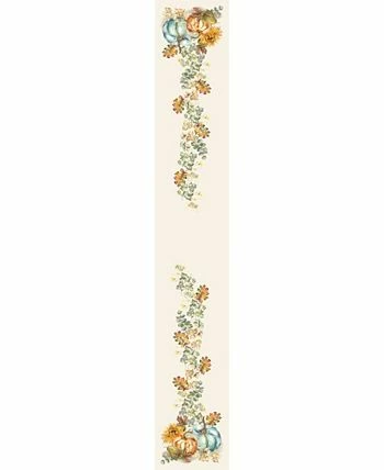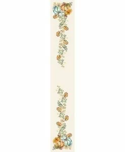 This soft to the touch “Harvest Sun” table runner is an excellent way to create a warm harvest table setting. Harvest Sun features soft warm hues that create a cozy feeling. Elements of sunflowers, pumpkins, gourds and leaves on the runner are perfect for a casual dinner party of a formal event.