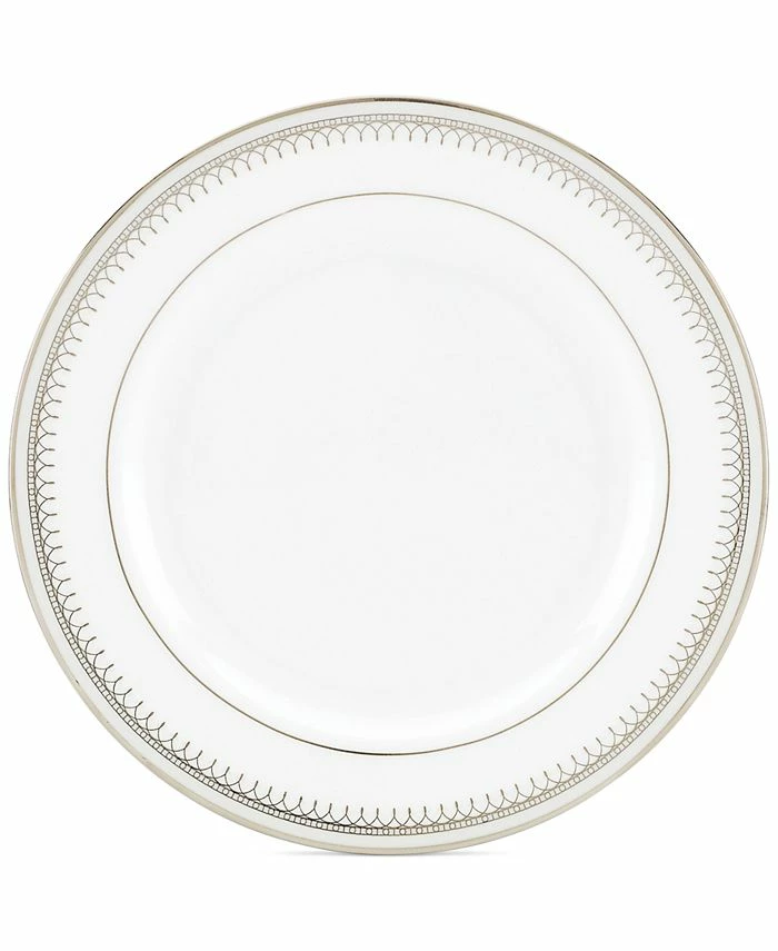 Accented with shimmering platinum, the Belle Haven appetizer plate by Lenox has all the elegance of white china – with a playful twist! Delicate beading and a band of soft pewter add to its enchanting style.