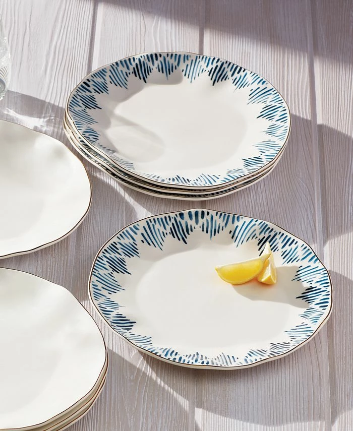 Dinnerware and serving collection with a hand-thrown pottery feel in an assortment of joyful patterns in a blue and white pallet. Microwave safe gold adds a hint of glimmer to everyday performance and presentation.