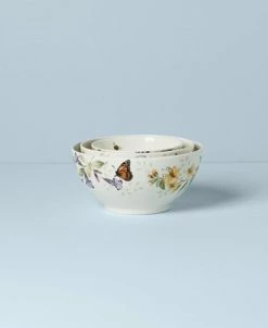 Enjoy soup, rice, cereal and so much more with this 3-piece bowl set from our delightful butterfly meadow collection. This stackable set features a footed design to easily elevate each bowl on top of one another for beautiful presentation.