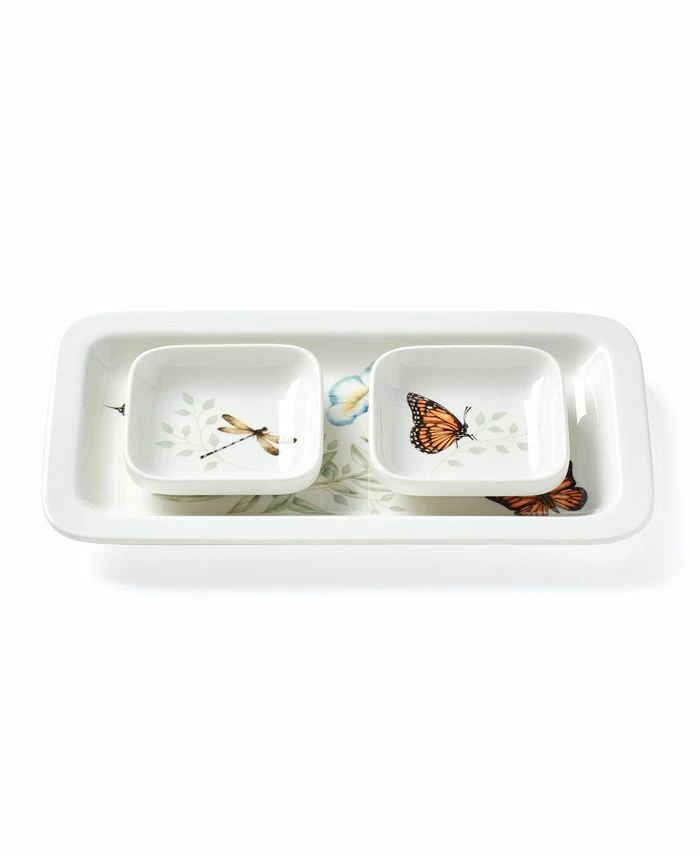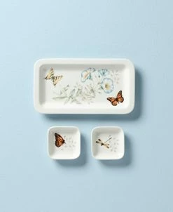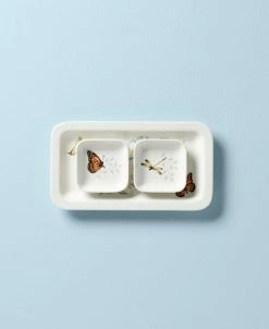 This unique capsule assortment from our best-selling Butterfly Meadow collection is designed to coordinate with your favorite Asian cuisines and drinks. We created a long, sculpted plate for handling sushi, plus two dip bowls for sauces.