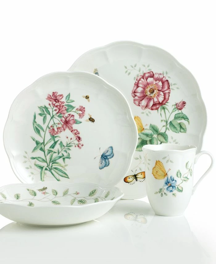 Spring is perpetually in season with whimsical Butterfly Meadow dinnerware. The dishes of this set feature colorful blooms and butterflies that mingle on beautifully scalloped, white porcelain for a sweet, breezy scene that’s made to mix and match with all your place settings.
