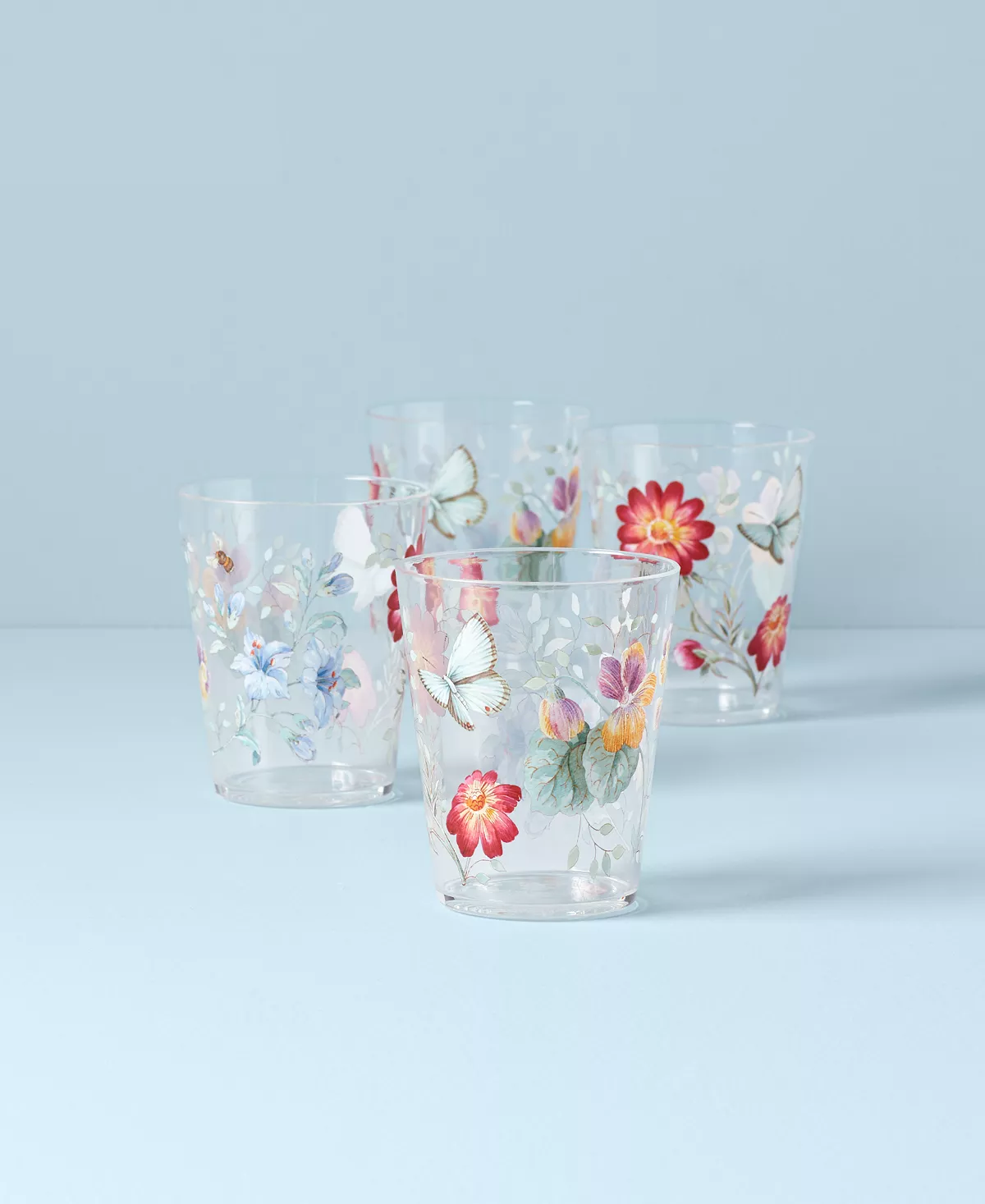 Accent everyday dining with the irresistible whimsy of Lenox’s Butterfly Meadow Collection double old-fashioned glasses, charmingly patterned in butterflies and blooms.