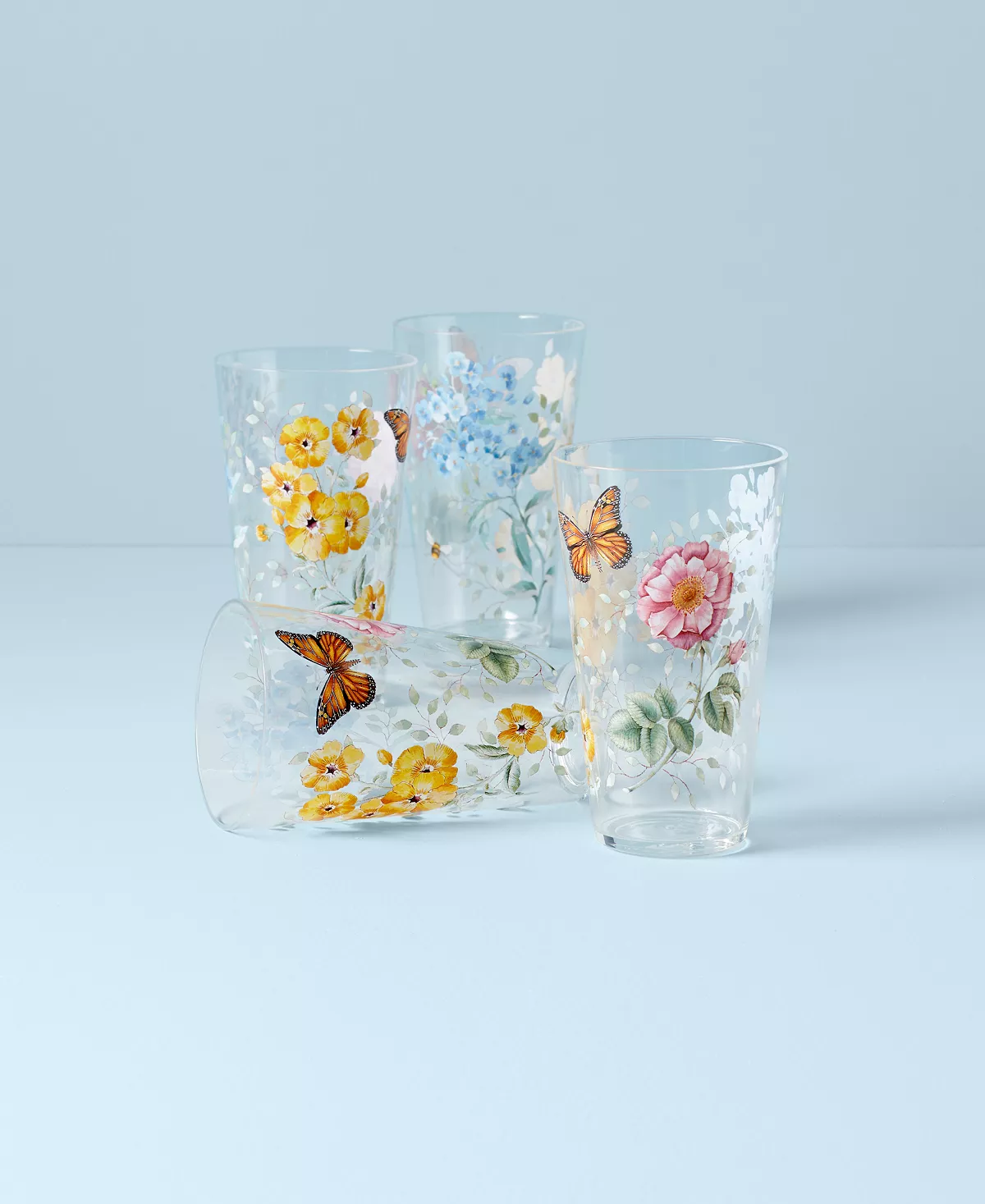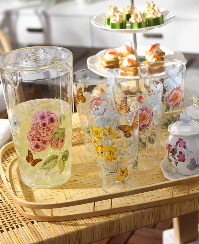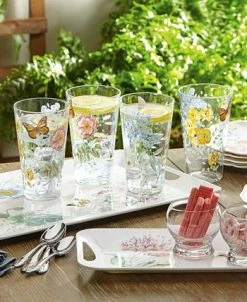 Accent everyday dining with the irresistible whimsy of Lenox’s Butterfly Meadow Collection highball glasses, charmingly patterned in butterflies and blooms.