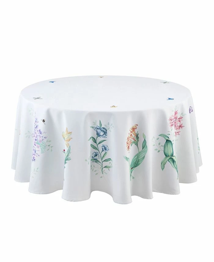 Lively butterflies, dragonflies and bumblebees buzz about a variety of vibrant flowers on this new Butterfly Meadow Garden Tablecloth.