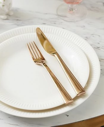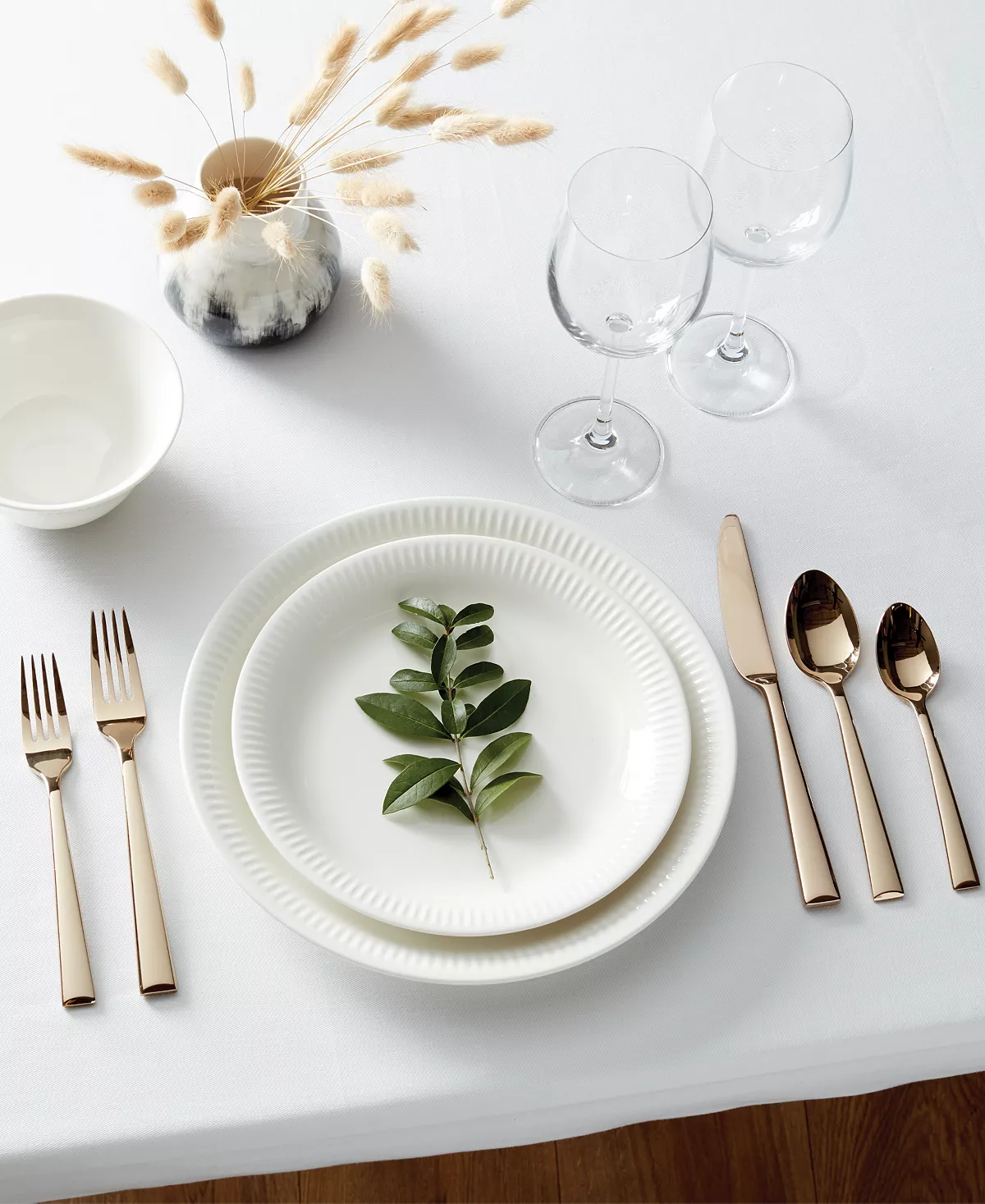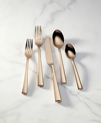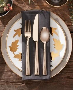 A new gold standard in dining elegance, the Colebrook flatware set from Lennox is in a champagne finish that lends contemporary sophistication to your place setting.