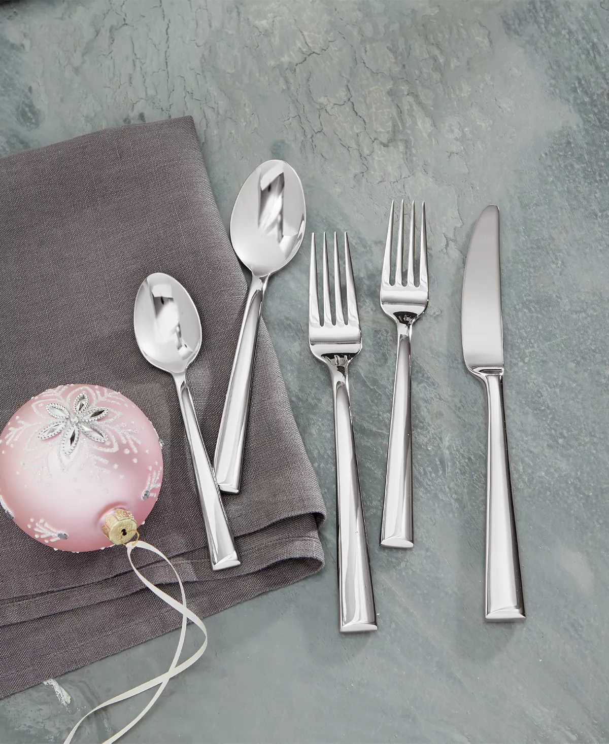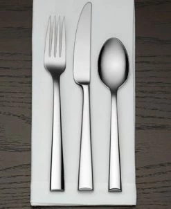 Clean lines and an architectural shape give this flatware a modern, sophisticated feel. The handles widen gently, ending in a gracefully beveled edge. The Continental Dining place settings collection is made from stainless steel for a substantial weight and comfortable feel.