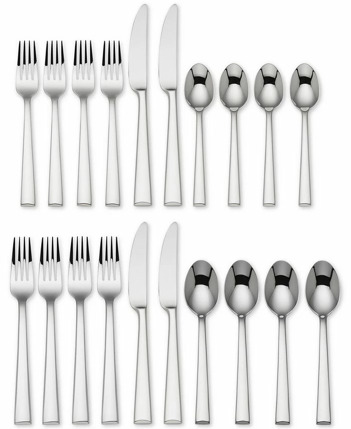 - Includes 4 of each: salad fork, dinner fork, dinner knife, soup spoon and tea spoon