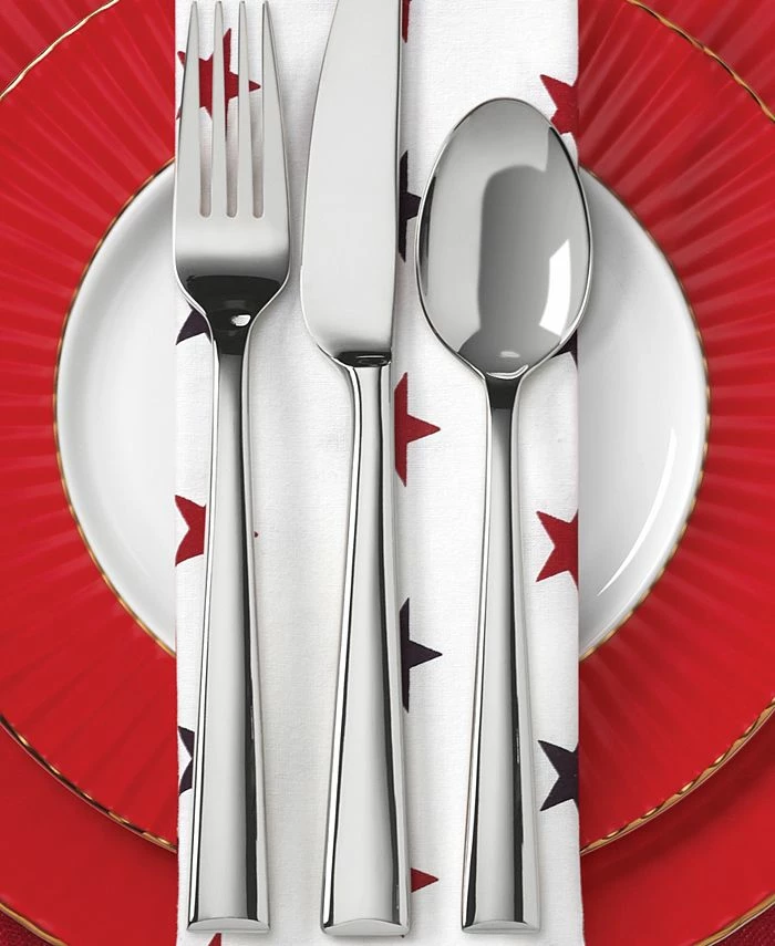 Clean lines and an architectural shape give this flatware a modern, sophisticated feel. The handles widen gently, ending in a gracefully beveled edge. The Continental Dining place settings collection is made from stainless steel for a substantial weight and comfortable feel.