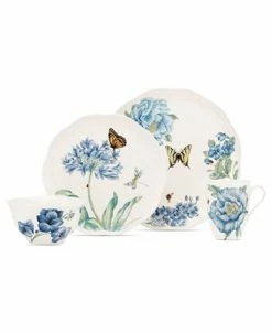 Now in bloom. The Butterfly Meadow Blue place setting from Lenox features the sturdy, scalloped porcelain of original Butterfly Meadow dinnerware but with oversized peonies, roses and other new blossoms in shades of blue.