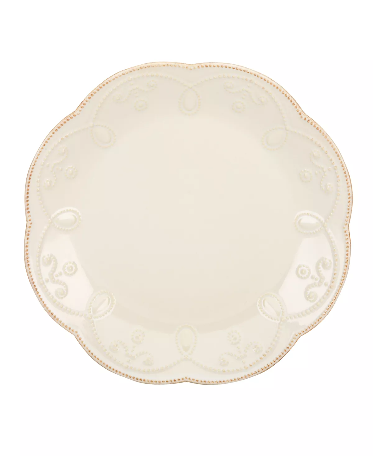 With fanciful beading and a feminine edge, the accent plates from the Lenox French Perle dinnerware collection have an irresistibly old-fashioned sensibility. Hard-wearing stoneware is dishwasher safe and, in a soft hue with antiqued trim, a graceful addition to every meal.