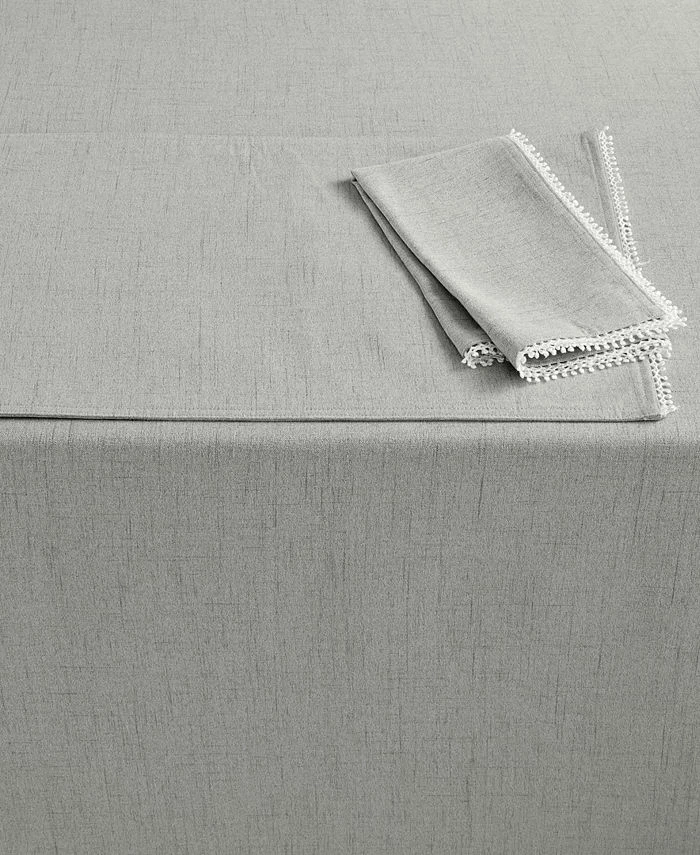 Dress your table for special occasions with the soft, dove gray tone and delicate bobble trim on this tablecloth from Lenox’s French Perle Collection.