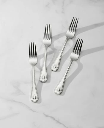 Crafted of 18/10 stainless steel, these French Perle dinner forks positively shine. A gentle teardrop shape at the bottom of the handles is decorated with dainty beading for an elegant look.