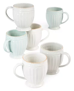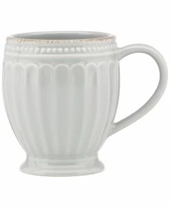 The everything mug from Lenox’s French Perle collection features intricate detailing inspired by hand-embroidered fabrics. A carved beaded motif of scrolls and jewel-like elements punctuates sheer elegance.