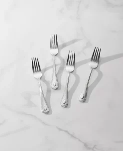 Crafted of 18/10 stainless steel, these French Perle salad forks positively shine. A gentle teardrop shape at the bottom of the handles is decorated with dainty beading for an elegant look.