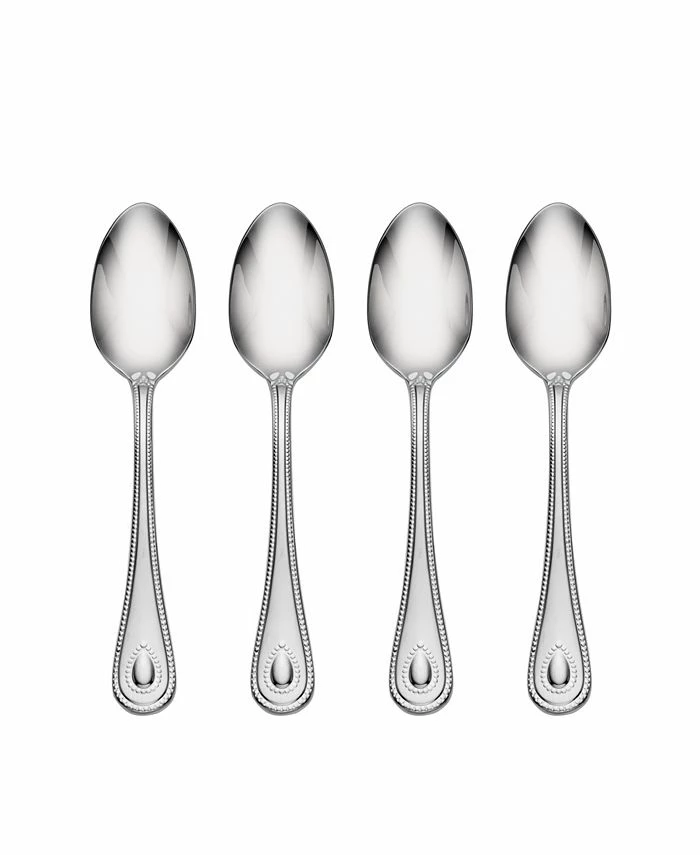 Crafted of 18/10 stainless steel, these French Perle teaspoons positively shine. A gentle teardrop shape at the bottom of the handles is decorated with dainty beading for an elegant look.