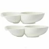 This 12-piece dinnerware set, crafted of durable white ceramic stoneware, includes a gentle scalloped border along the dinner plates, salad plates, and pasta bowls. This set features a delicate textured dot pattern that elevates meals from casual to formal. The 12pc set included 4 of each: Dinner Plates, Accent Plates and Pasta Bowls. This item is dishwasher and microwave safe, for added convenience.