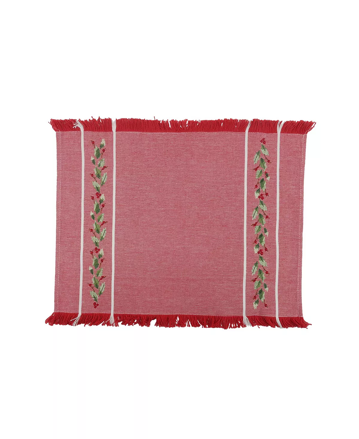 Add some holiday cheer to your table with our woven holiday stripe placemats from Lenox, featuring embroidered holly leaves and berries.