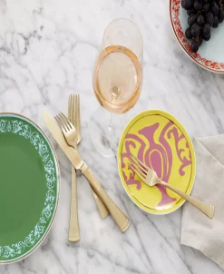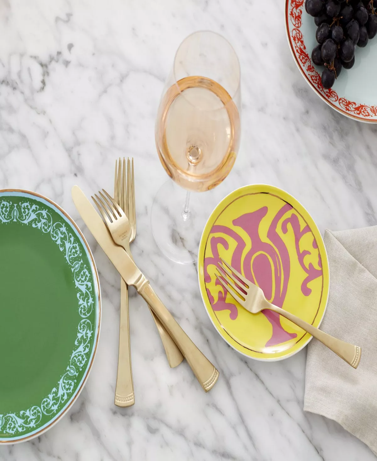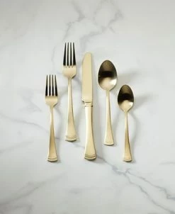 The same classic Portola flatware that you know and love, now in a gold-tone satin finish. Complete with flared handles and a beaded channel at each base, this set includes forks, salad forks, knives, spoons and teaspoons that’s perfect for serving four people.