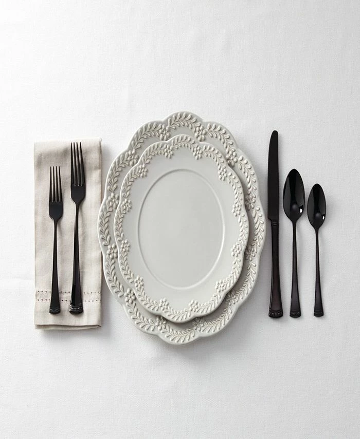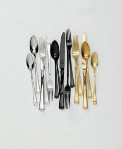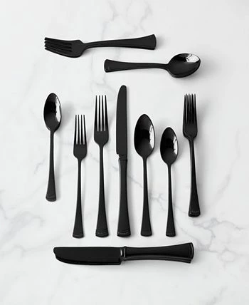 The same classic Portola flatware that you know and love, now in a black color with a mirror finish. Complete with flared handles and a beaded channel at each base, this set includes forks, salad forks, knives, spoons and teaspoons that’s perfect for serving four people.