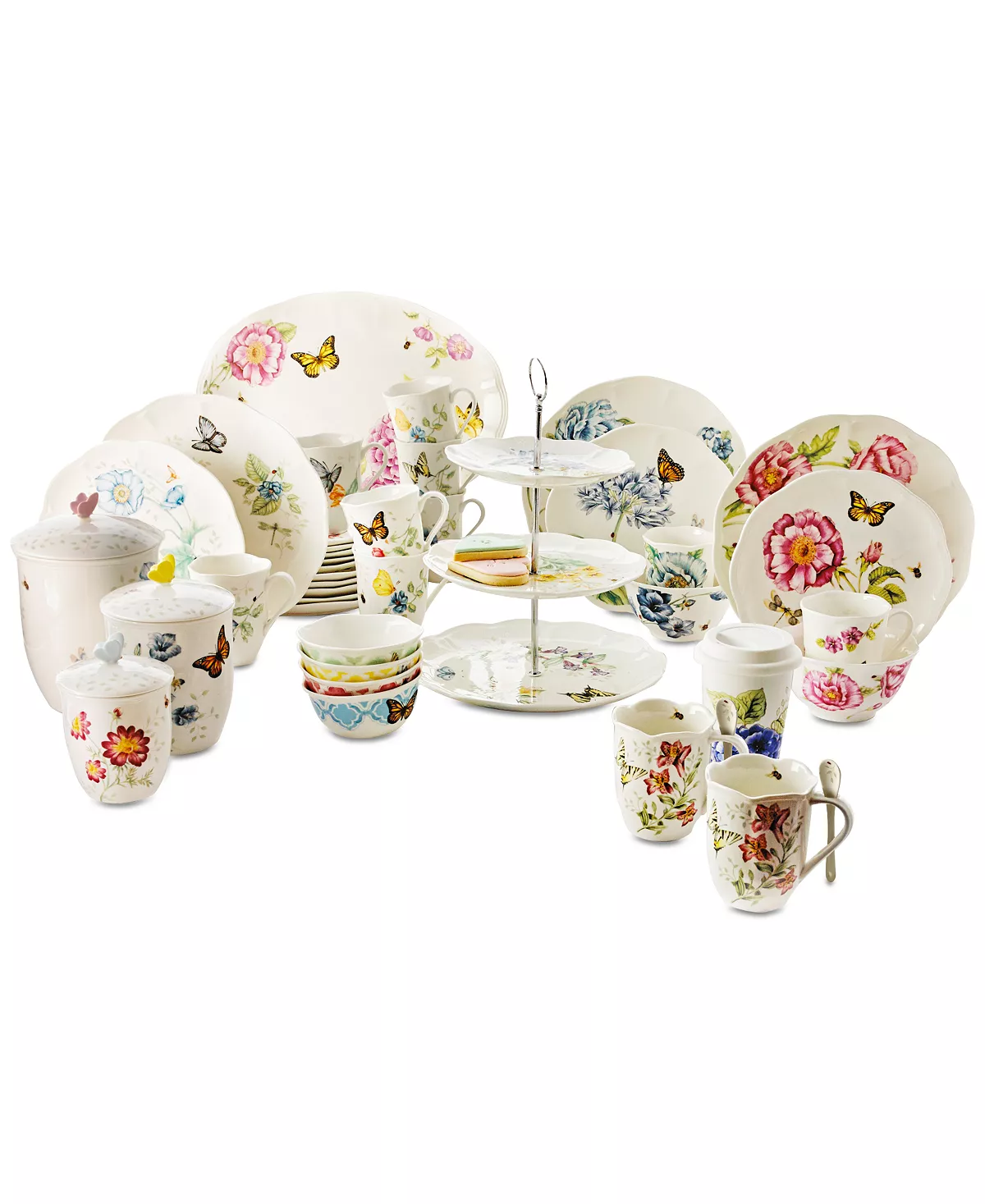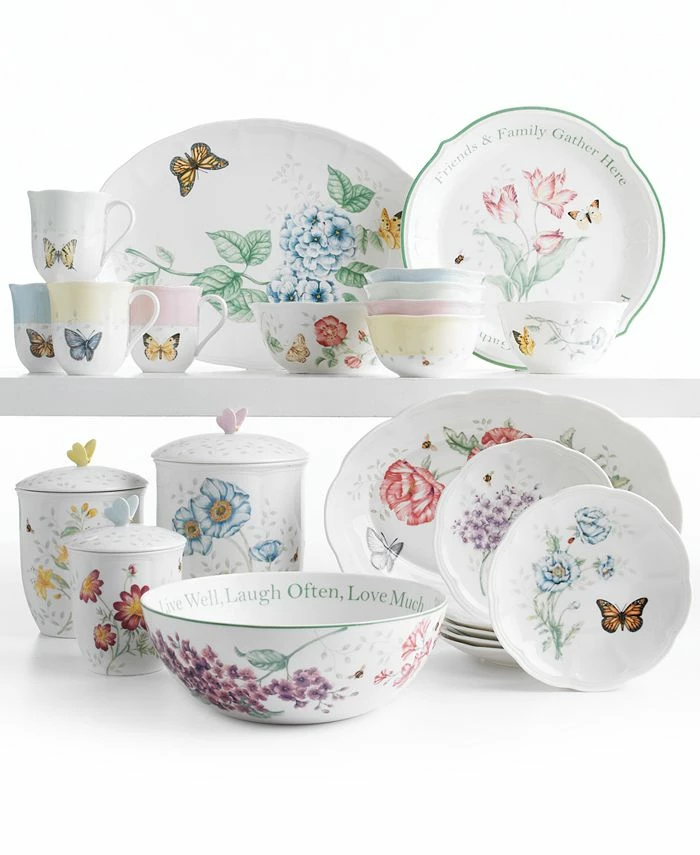 Forever spring. Beloved for its pattern of butterflies and blooms, Butterfly Meadow serveware from Lenox accents casual tables with irresistible whimsy. Figural accents, sculpted detail and words of inspiration make the distinct pieces fun to mix and match.
