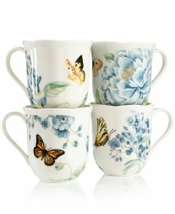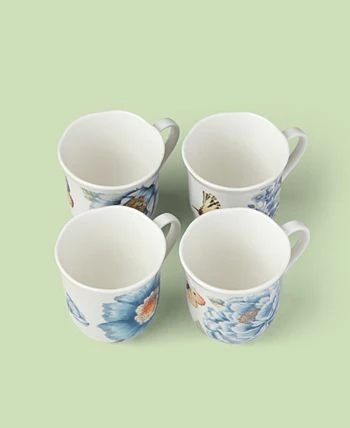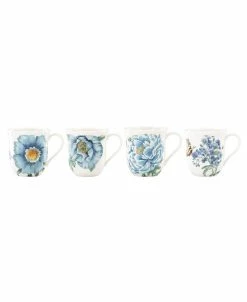 Now in bloom. Butterfly Meadow Blue mugs from Lenox feature the sturdy, scalloped porcelain of original Butterfly Meadow dinnerware but with oversized roses and other new blossoms in shades of blue. With four unique patterns.