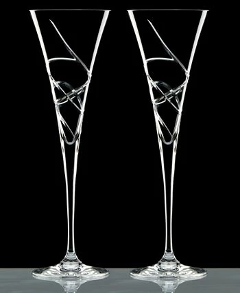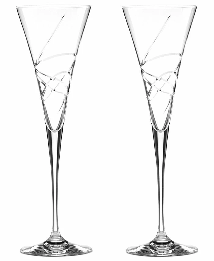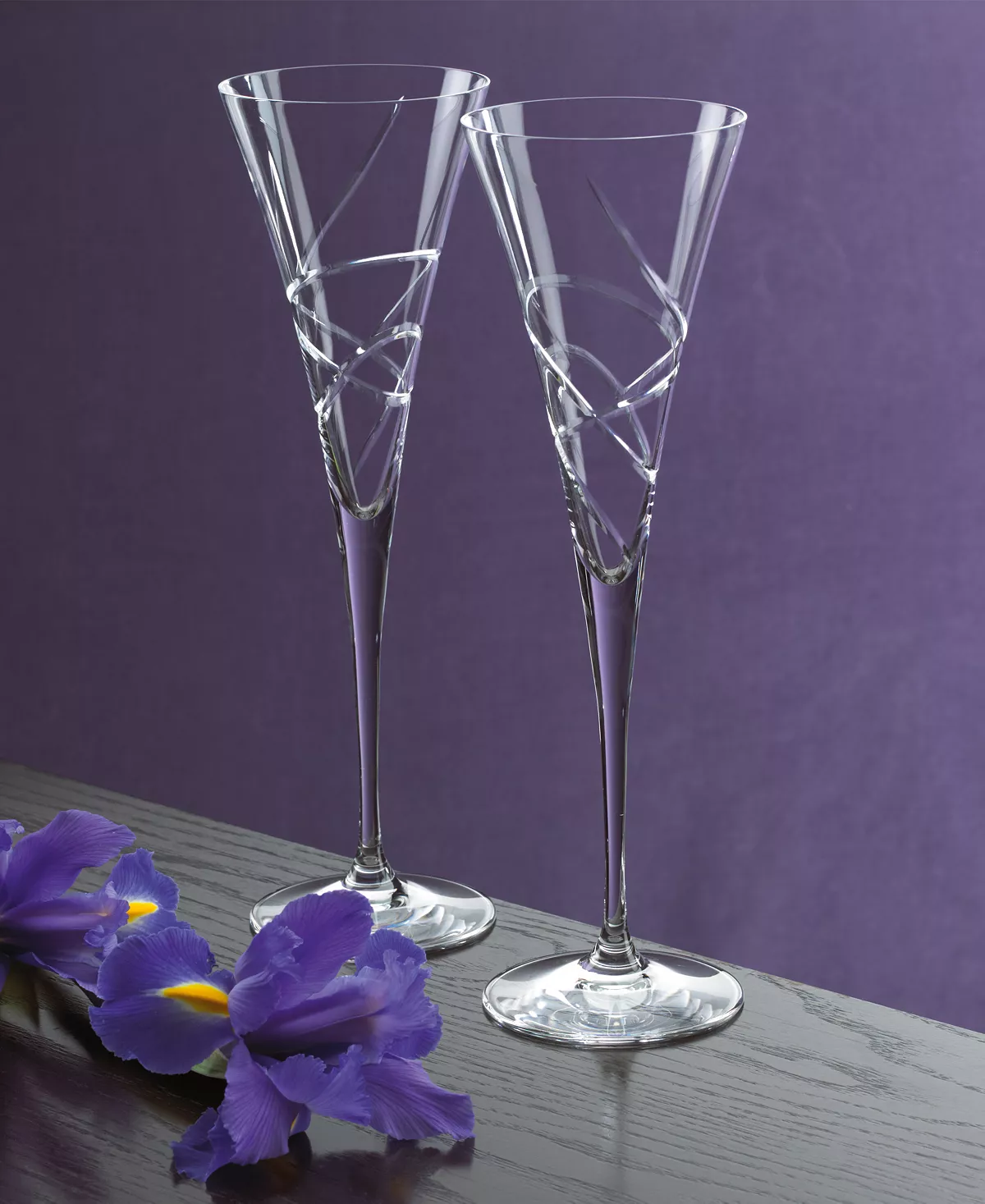 A fanciful cut pattern contrasts the timeless silhouette of Adorn crystal toasting flutes, featuring the exquisite craftsmanship of Lenox.