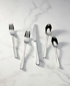 With a simple, sleek design the Stratton 65-piece Flatware Set by Lenox ushers the polished 18/10 stainless steel to center stage. This elaborate and sleek silverware set includes twelve dinner forks, salad forks, dinner knives, tablespoons, and teaspoons, in addition to a serving spoon, pierced serving spoon, sugar spoon, butter knife, and serving fork.