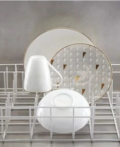 Sleek artful coupe shapes with clean edges come to life in a warm sophisticated palette with gold accents. Available in White, Blush and Taupe colorways.