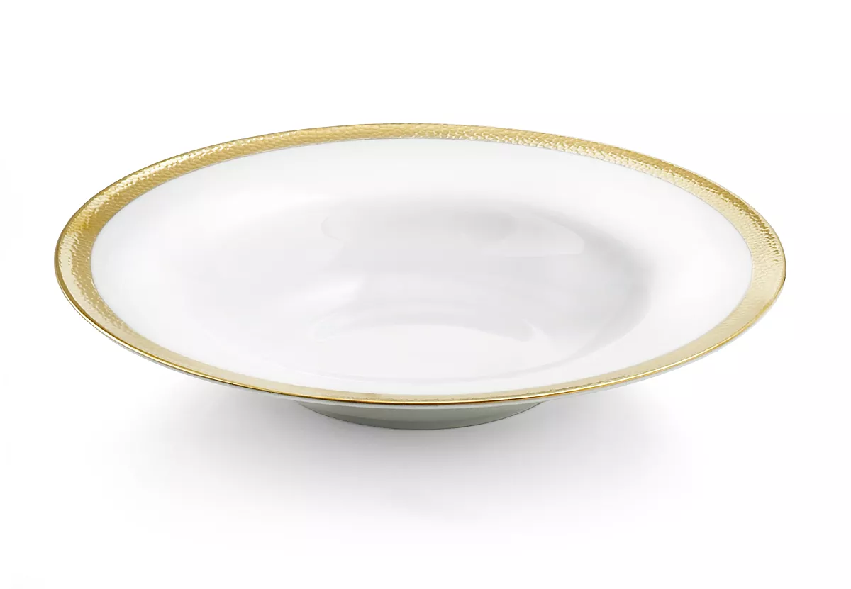 The Michael Aram Goldsmith Collection is an homage to the simple beauty of the metal forger’s craft. Hammertone techniques have been a cornerstone in jewelry and metal crafting for millennia, and each mark bears silent testament to the skill of the craftsman. The Goldsmith Collection of fine porcelain strives to capture the random and organic feeling of this age old process. The porcelain is also designed to integrate perfectly with any of Michael’s other dinnerware patterns. The unified body shapes used in all of the motifs make mixing and matching the patterns a seamless proposition. “I have always been mesmerized by the craft of hand forging and how a cold hard piece of metal can be transformed in shape. It is romantic and almost magical to me how quick gestures and seemingly random strikes of a hammer become frozen in time, creating a texture that is both spontaneous and ageless.”