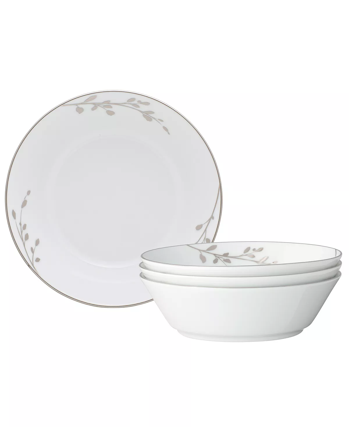 Birchwood brings modern elegance to the table. The delicate branches and budding twigs in platinum brings a natural element to a modern white porcelain dinnerware collection. The edge of each piece is adorned with a thin platinum band.