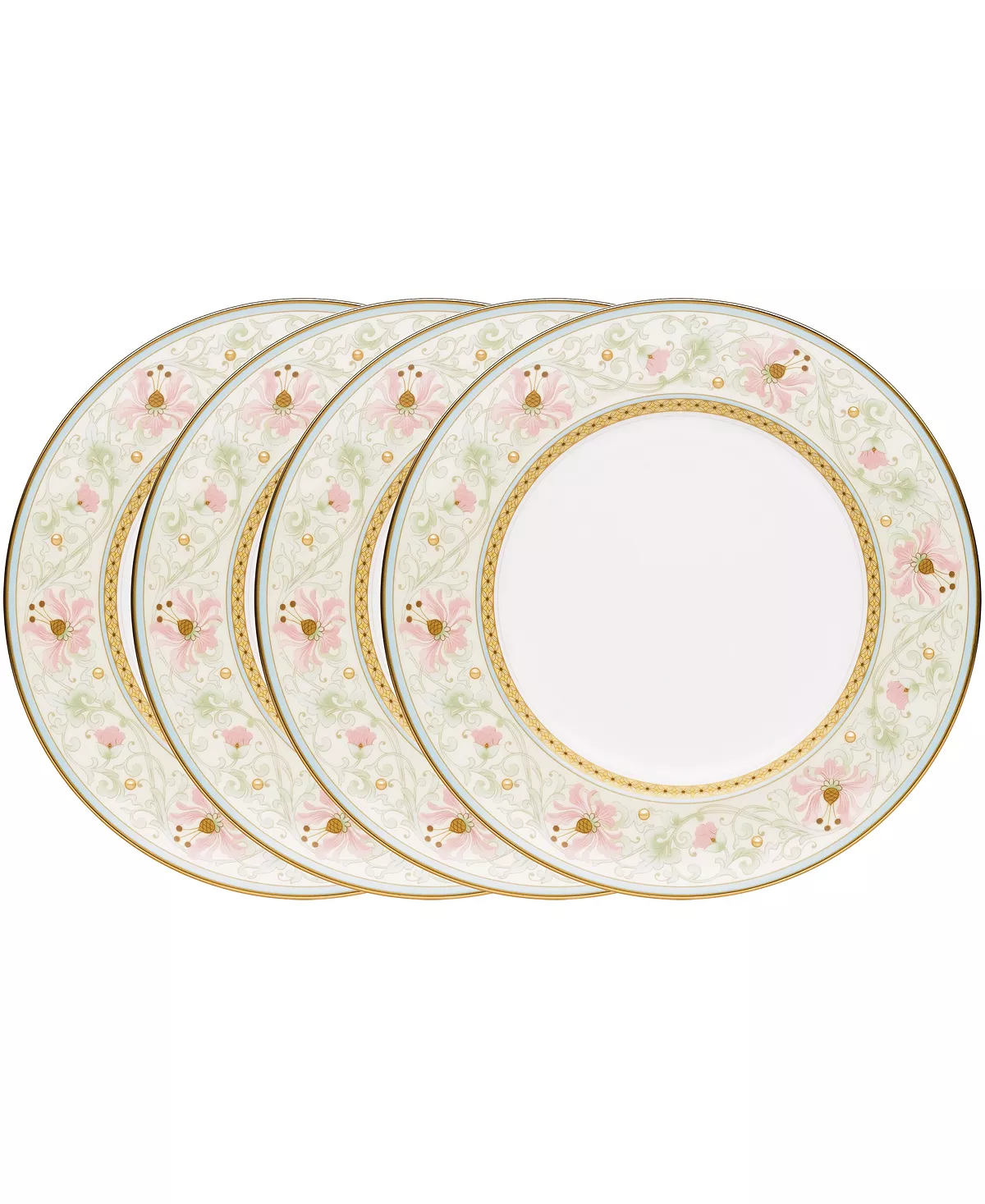 Blooming splendor brings a bold floral presentation to the table. Adorned in beautiful pastel shades and raised enamel dots, this pattern is a dreamy delight. The edge of each piece is adorned with a thin gold-tone band.